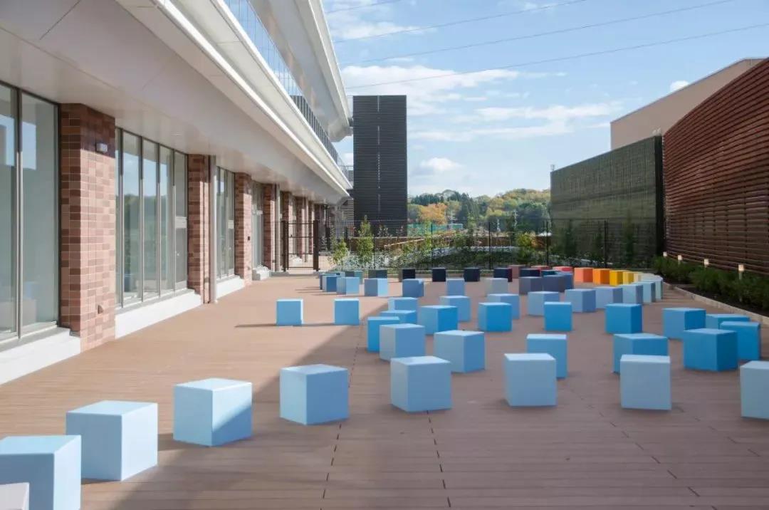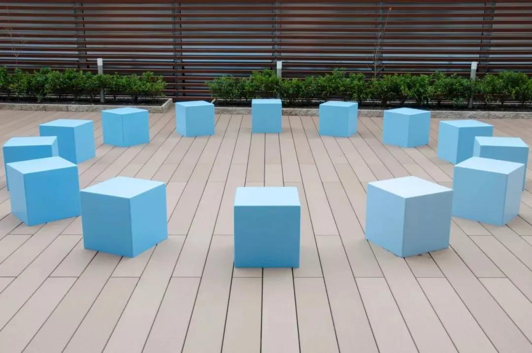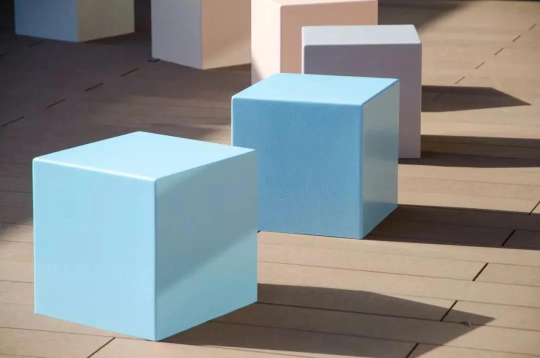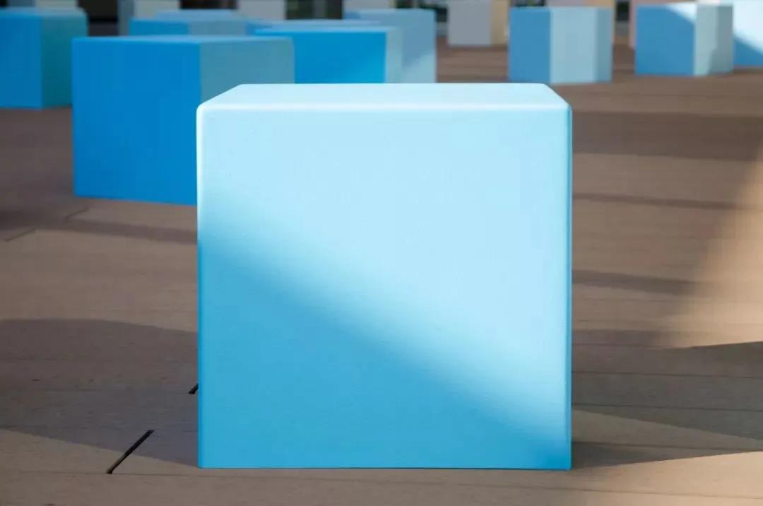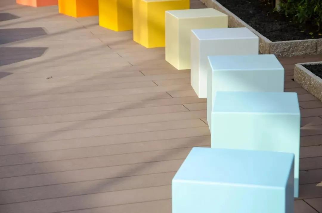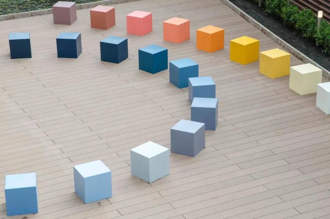 五顏六色的長凳在露天陳設,你可以在一所新的大學醫院大樓的屋頂花園里找到它們。這些立方體形狀的