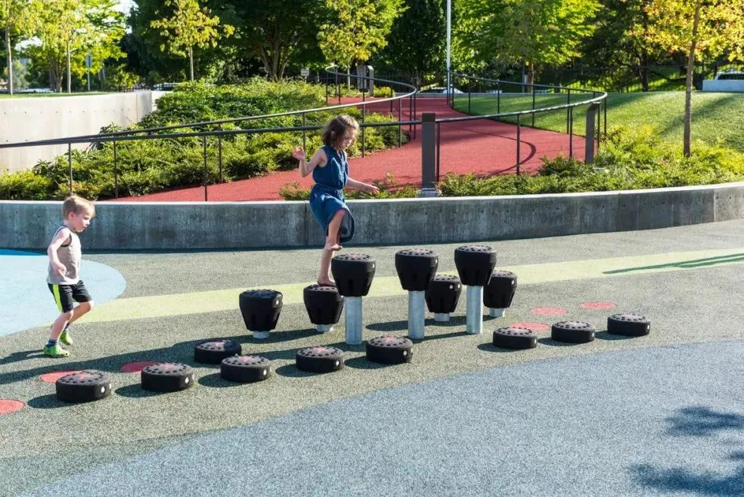 定制的游樂元素包括攀爬結構,無障礙滑梯,專業秋千,旋轉器,跳樓梯,感官元素和協作水上游戲。操