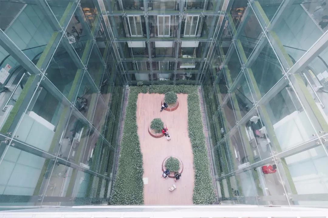 設計將庭院綠化、屋頂綠化、入口廣場綠化等分散的景觀系統引入建筑,同時,分散的庭院綠化與醫院交通軸平行,采用退臺式綠化平臺,最大化每層候診空間的采光和綠化景觀,拉近患者與大自然的距離,提升空間感受的豐富性,形成一個平靜和充滿治愈力的建筑空間。