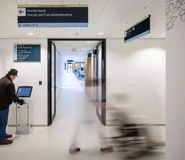 為了解決這個問題,Zaans Medisch Centrum設(shè)計團隊從醫(yī)院入口到內(nèi)部,全程做好導(dǎo)視標(biāo)牌的點位布置。
